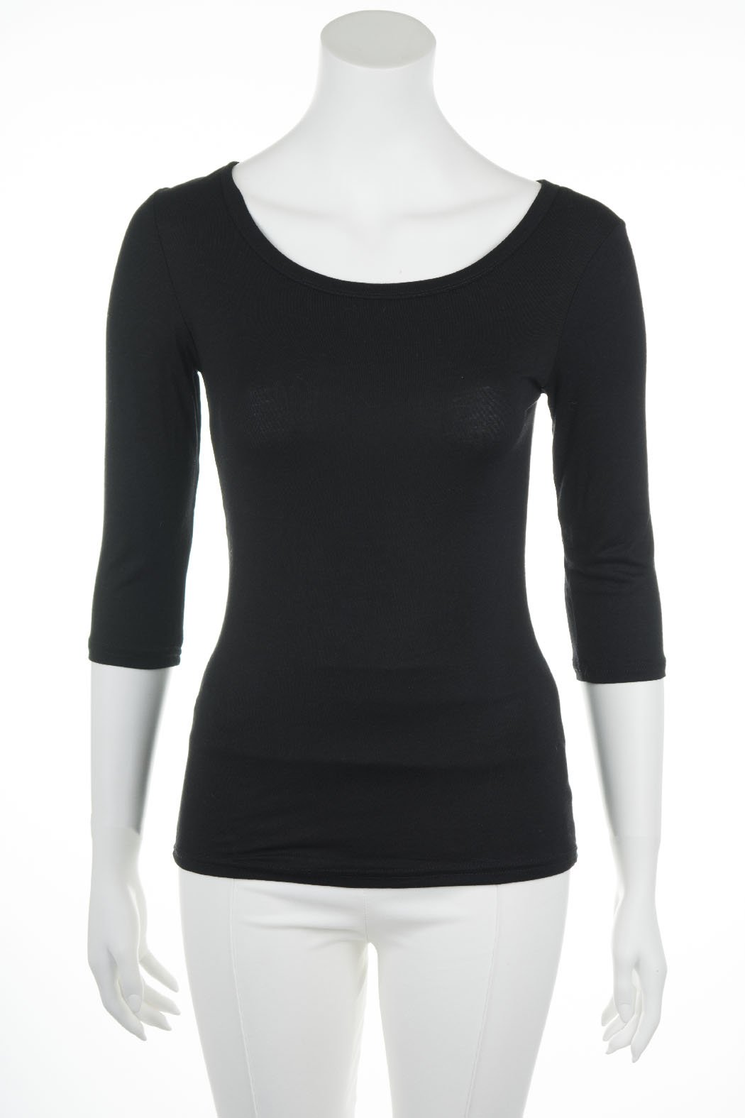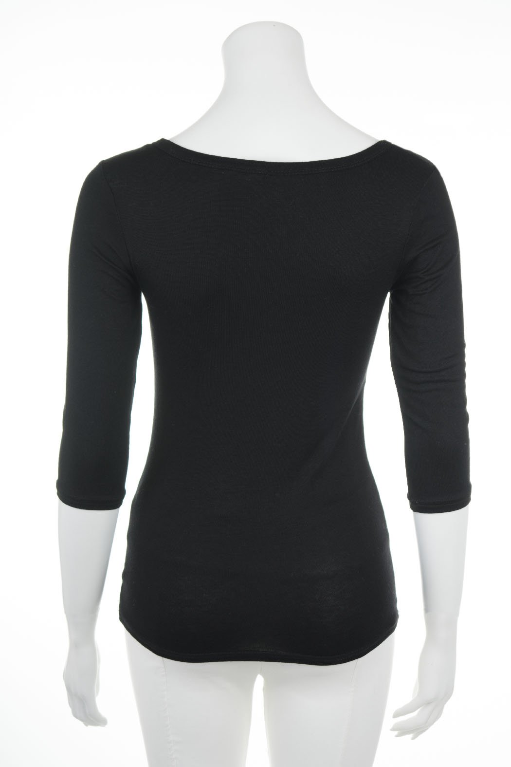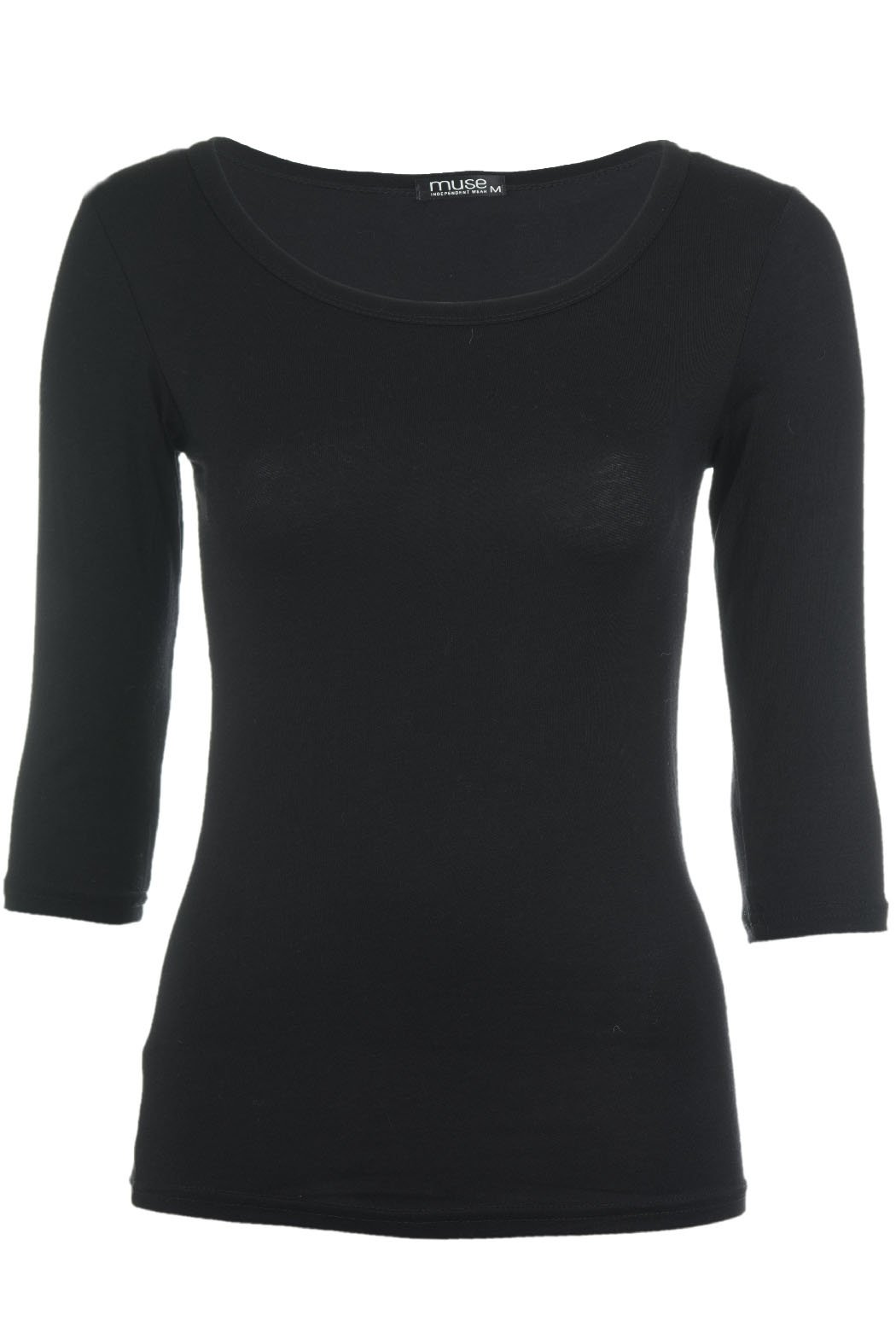 Muse Shirt für Damen mit 3/4 Arm und Rundhals Baumwolle Stretch Schwarz S