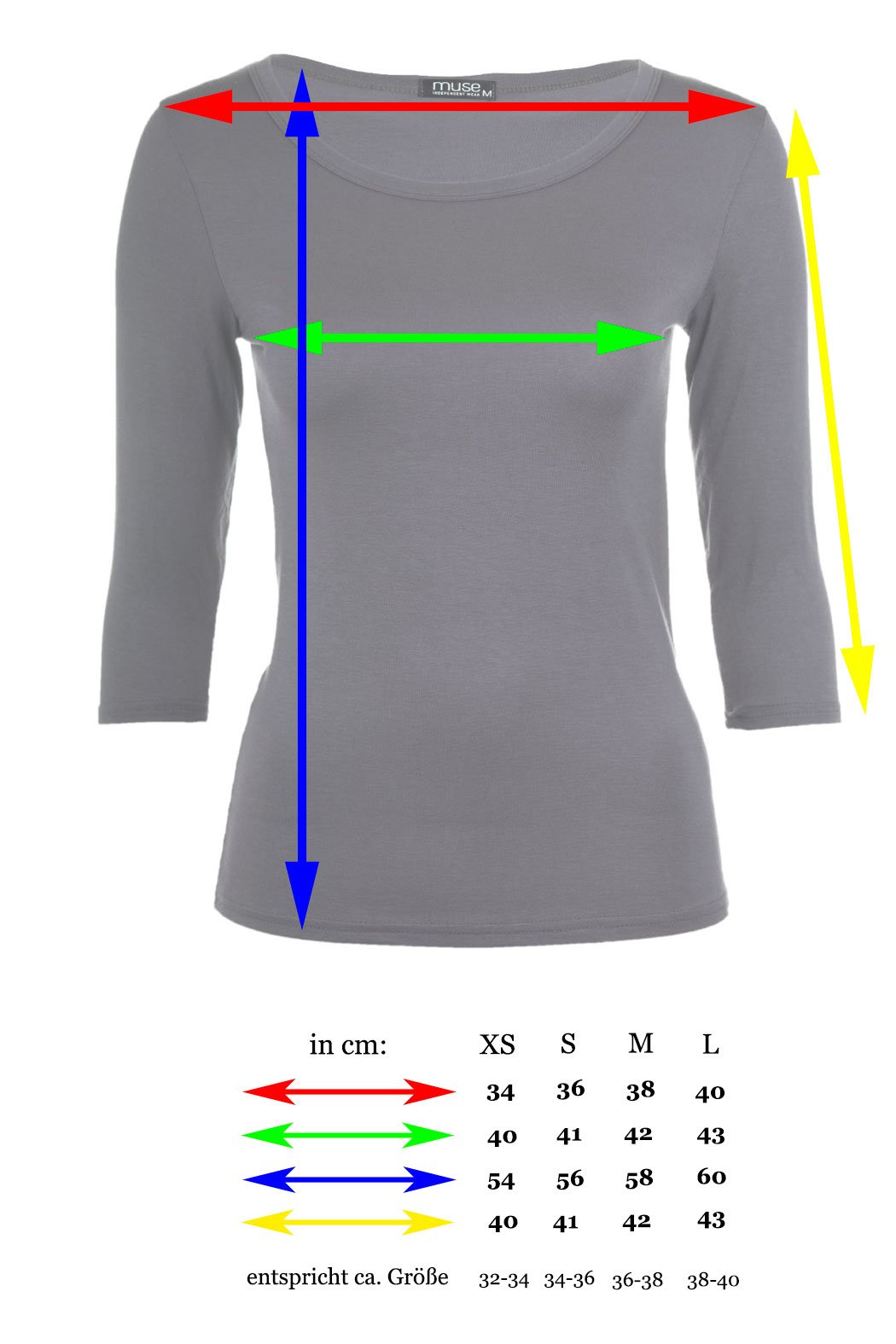 Muse Shirt für Damen mit 3/4 Arm und Rundhals Baumwolle Stretch viele Farben
