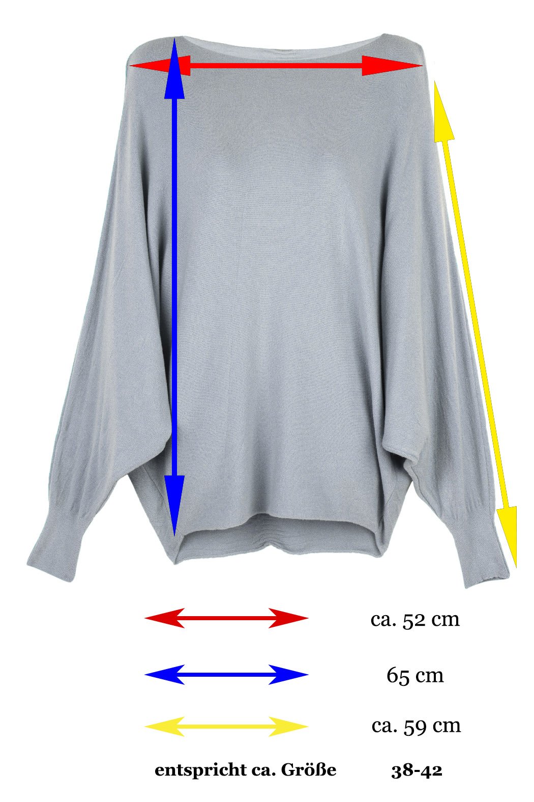 Pullover für Damen mit Fledermaus-Ärmeln Viskose Viele Farben One Size 38-42 hell-altrosa