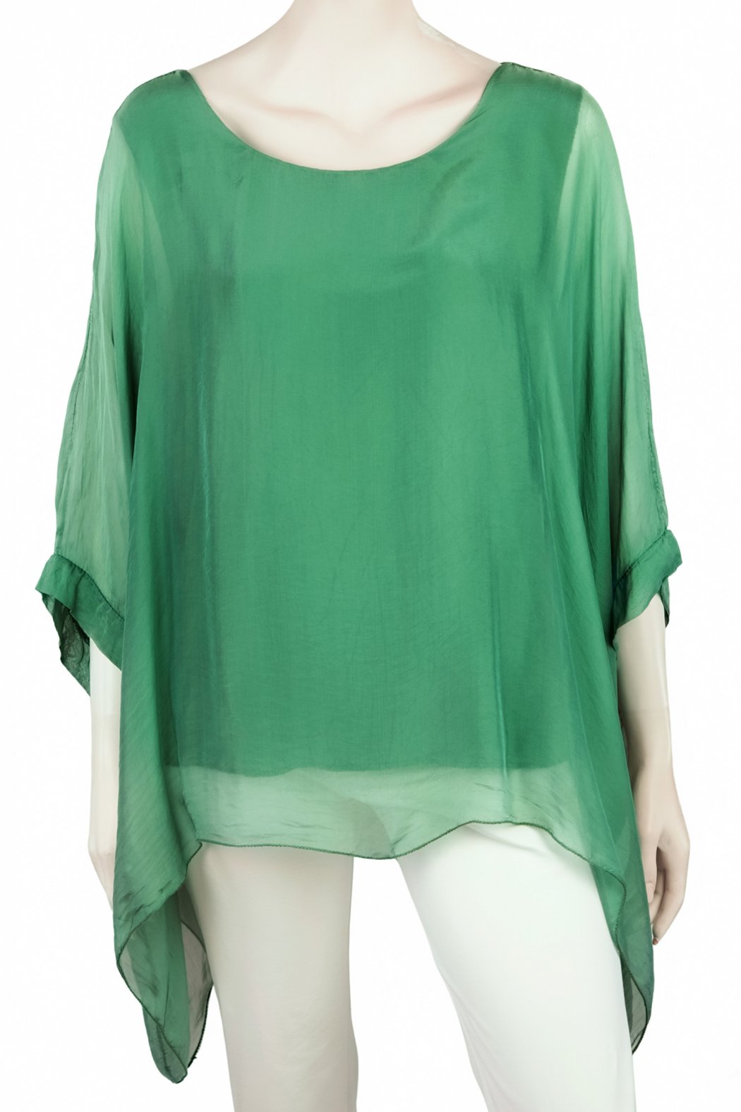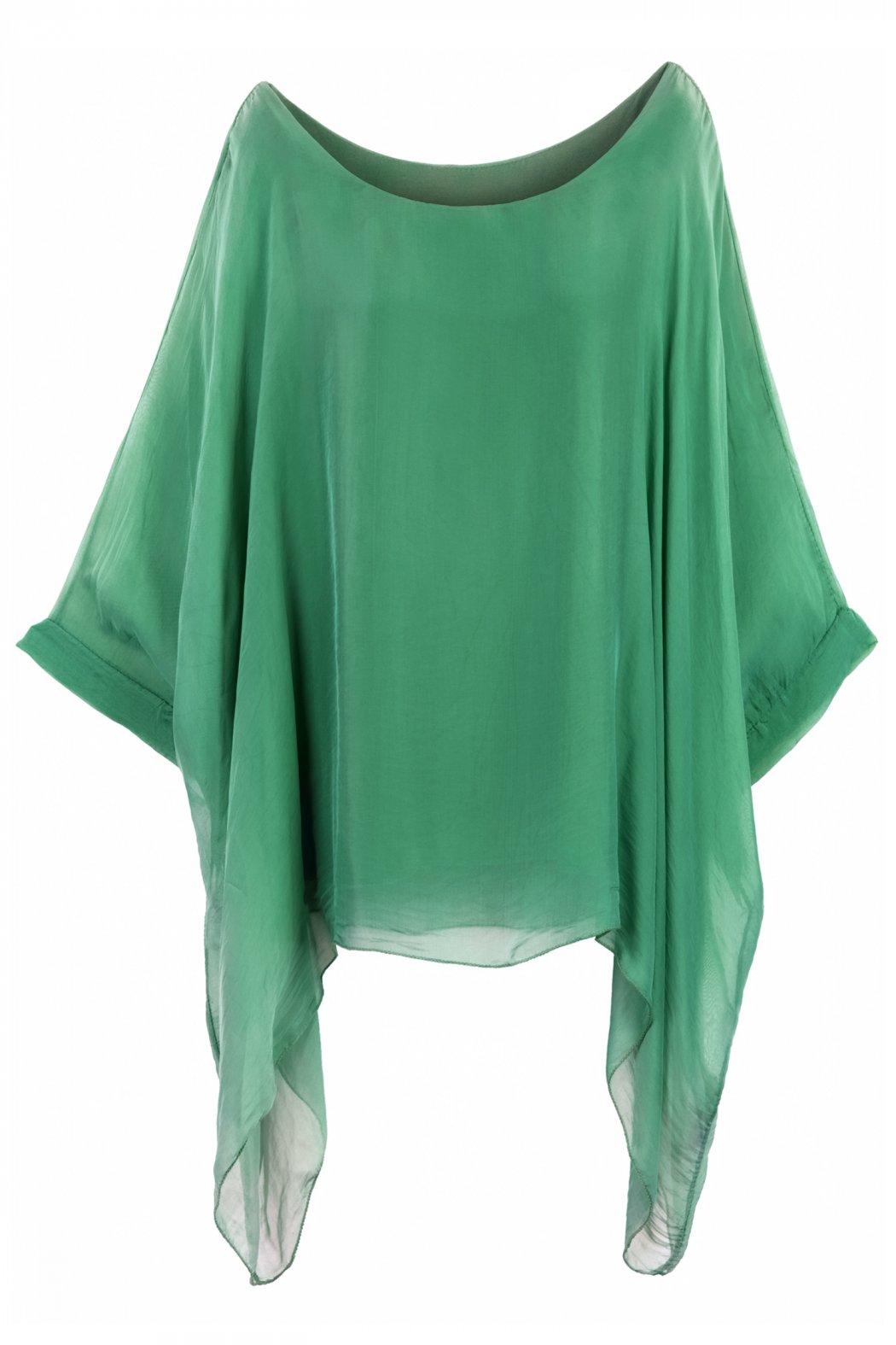 Seidentunika Damen made in italy Fledermaus-Ärmel Viele Farben 38-44 one size smaragdgrün